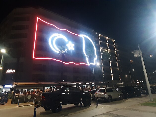 A výhledy z našeho hotelu s obrovským neonem s hlavou Ataturka.