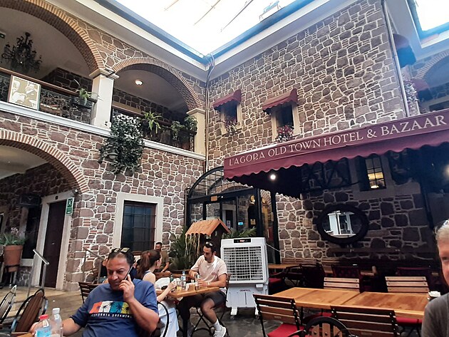 Tak jsme hledali, ve kterém bistru si dáme oběd, až jsme narazili na krásnou tureckou restauraci ve stylu pohádky Tisíce a jedné noci, která patřila k malému hotelu, který mě zaujal už na bookingu… viz fotky.