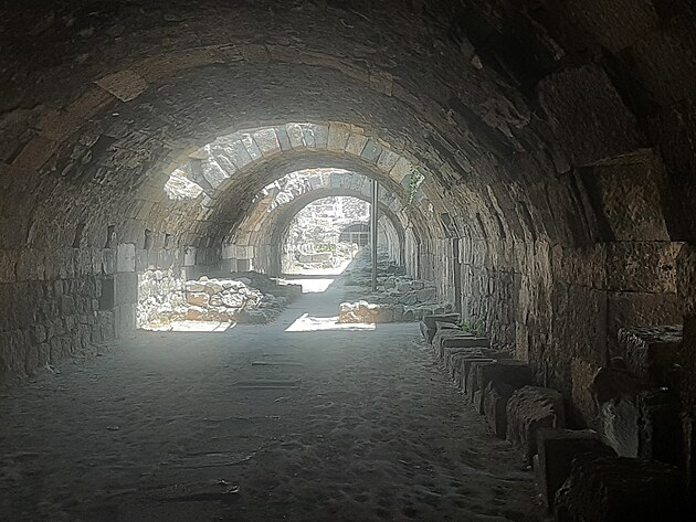 Je stále možné vidět i antické žlábky s tryskající vodou i v parném létě a zbytky raně křesťanských symbolů vyrytých nebo nakreslených na zdech, ale některé části byly nepřístupné a jinde se fotit nesmělo. Že tam ty raně křesťanské symboly jsou stále dochované jsme věděli z knížek, které se mi zázračně podařilo sehnat ještě z Prahy (v angličtině).