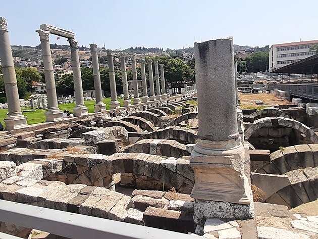 Hned první den jsme vyrazili pěšky z hotelu obhlédnout antickou Smyrnu. Místní archeologická oblast s původními vykopávkami zahrnuje zbytek hradeb u antické baziliky a agoru (antické řecké tržiště změněné na římské fórum). V antické době bazilika byla něco jako soudní dvůr a radnice (ne kostel) a docela rozsáhlé podzemní klenby.