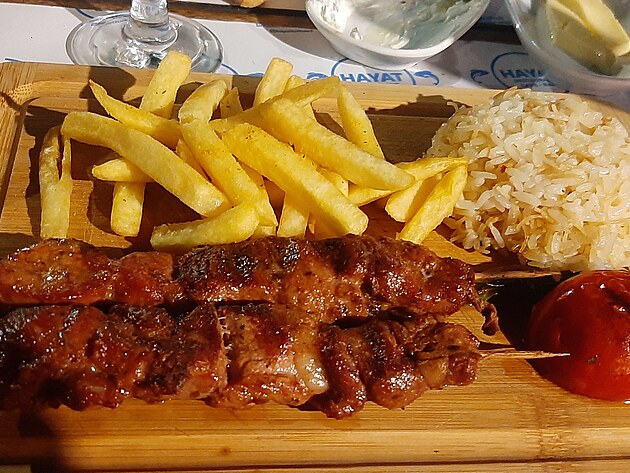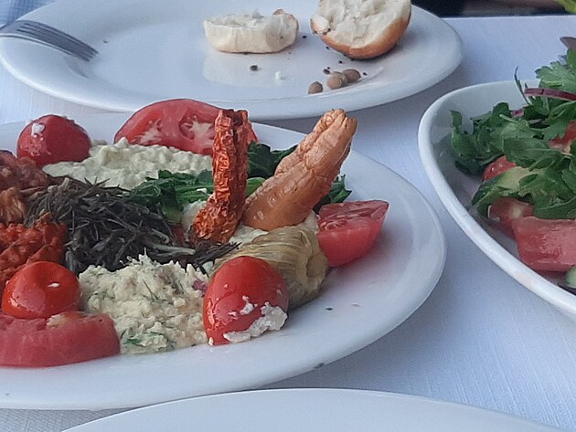 No tak tam jsme se zastavili na oběd a měli i na licenci na alkohol a vyhlíželi turisty, aby jim nabídli jak pivo Eféz, ale i turecká místní vína. Co více jsem si na oběd mohla přát. Jen nás trochu překvapilo, že ledovou kávu tu servírují v plastových kelímcích Starbucks, i když jsme řekli, že ji vypijeme u nich.
