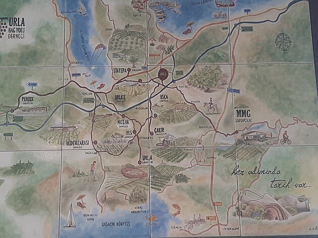 Ale moje snaha Urlu vidět, když jsme tak blízko, mi nedala spát, a tak jsem hledala až jsem našla místního průvodce mluvícího skvěle anglicky, který nabízel odvezení vlastním autem a zařízení prohlídky a ochutnávky 2 vinařství za rozumnou cenu a stálo to za to. Jednak bychom to vůbec nenašli a po cestě jsme se mohli ptát na spoustu věcí ohledně současného života v Izmiru a v Turecku. V Turecku je podle něho aktuálně velkým problémem vysoká inflace, velmi rychle rostoucí ceny nemovitostí obzvláště v oblasti Urla, kam utíkají lidé z Istanbulu a Izmiru a zvyšující se daně pro všechny občany bez rozdílu příjmu.