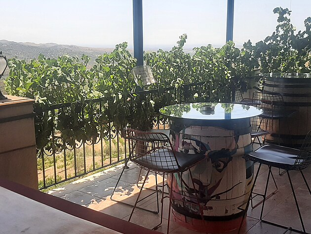 První vinařství to byla tradiční budova uprostřed kopcovitého terénu s vinicemi a krásnou terasou (viz link pod textem). Majitelka vinařka pochází z Kypru od Pafosu z řecké části, kde jsme byli před rokem. A navrhuje si sama i ty krásné zajímavé etikety.