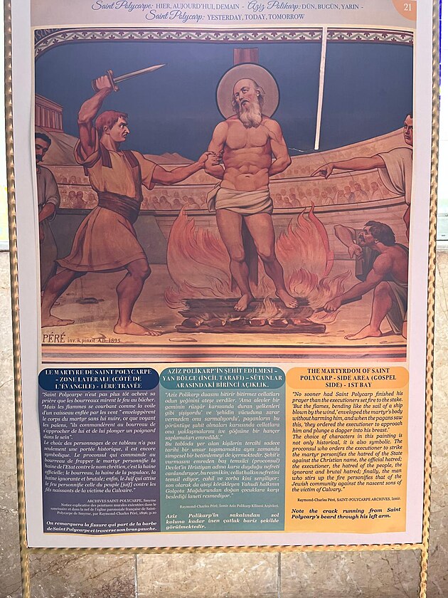 Svatý Polycarp ze Smyrny je i v kostele v Ravenně mezi slavnými raně křesťanskými mučedníky a našla jsem i moderní kostel v Los Angeles zasvěcený svatému Polycarpovi. Ale nejstarší křesťanský kostel ve Smyrně, který je možné vidět, je až ze 17. století z popudu Francie, asi kvůli tomu, že do Francie konkrétně Massalie dnešní Marseilles se dostalo křesťanství díky misionářům přímo ze Smyrny.