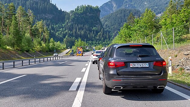 Švýcarské dálnice se se mnou loučí stylově, kolonou před uzavírkou. Ta mě trochu překvapí, neboť včera tady rozhodně nebyla.