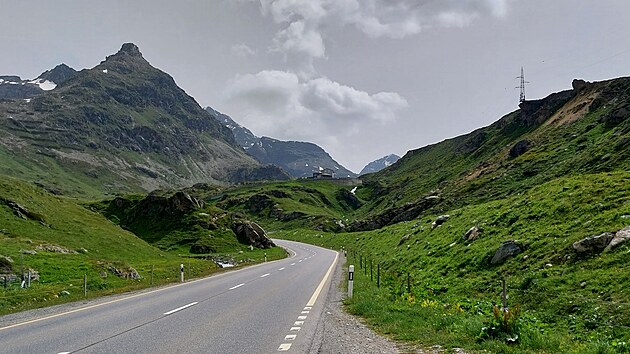 Průsmykům se dnes nevyhnu, ale nejsou to cílené návštěvy, dnes prostě vyplývají z trasy. První z nich je Julierpass (rétorománsky Pass dal Güglia) ve výšce 2284 metrů. Stoupání k němu začíná docela nenápadně, žádná odbočka, dokonce od výjezdu z dálnice jedu stále po stejné silnici.
