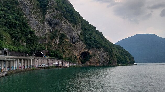 ... podruhé u jezera Lago d’Iseo, které se skoro celé objíždí v tunelu, takže tohle byla jedna z mála příležitostí vůbec vidět jeho hladinu.