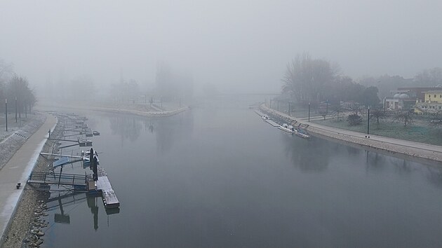 ... ale vzdálenější části města se pořád ztrácí v mlžném oparu.