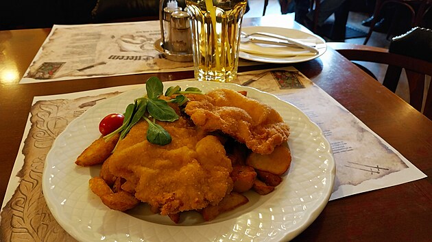 Moji pozornost však momentálně mnohem silněji upoutá restaurace za mnou. Není divu, je tři čtvrtě na jednu. Menu není nic převratného, ale stejně jsem trochu překvapen, když místo očekávaného jednoho řízku dostanu v podstatě dva.