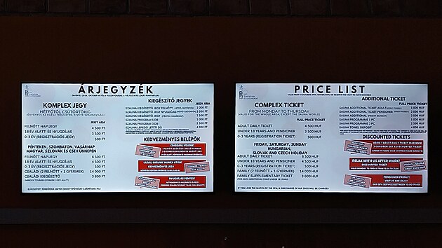 Vstupné je rozděleno na dvě kategorie. V pracovní den kromě pátku dáte za celodenní vstupenku 4500 forintů, od pátku do neděle a ve svátky 6500 forintů. Nemusíte přitom řešit, jestli jde o svátek maďarský, český či snad slovenský, připlatíte si v každém z těchto případů. Nebojte se, mají přehled, pro ověření mých slov stačí mrknout na internetové stránky. No a pak tady máme zvlášť vybrané dny. Mezi ně z bůhvíjakého důvodu patří i dnešní jinak celkem všední pondělí, neboť zaplatím šest a půl tisíce (tedy několik málo korun pod čtyři stovky).