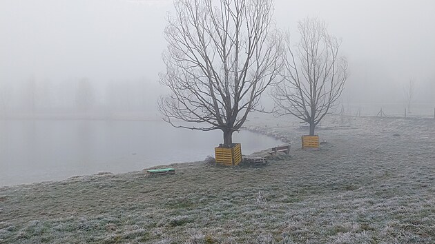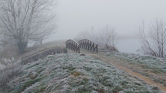 Prý jakési jezero má být u obce Kőszegfalva, vzdálené ani ne půl hodiny cesty z Büku. Ale kromě omrzlého břehu z něj nevidím prakticky nic. A tak měním pořadí bodů dnešního programu.
