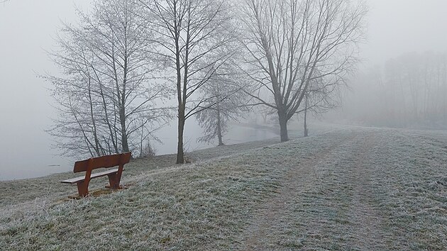 Začal jsem na chodníku mezi oběma jezery, poté se dám vlevo a jako první obcházím to větší z nich. A vlastně by to mohla být i docela pěkná procházka, kdybych kolem sebe něco viděl.