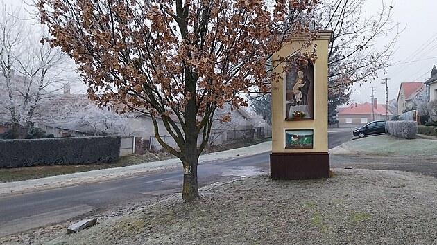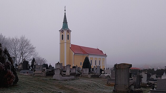 Kostel stojí na okraji hřbitova, a šikovný úhel pohledu chvíli hledám. Čas, přesněji řečeno šero, už mě trochu popohánějí, nakonec je mi těch možná deset minut ušetřených jízdou na okraj vsi dobrých.