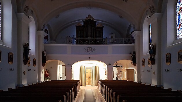 Abych pravdu řekl, čekal jsem, že se dovnitř nedostanu. Ale je odemčeno, jdu tedy dál. Nic však není tak jednoduché: venku je vidět ještě slušně, ale uvnitř kostela už je šero. Rozsvítím si sám, bohužel se mi povede najít vypínač jen od jednoho menšího světla u vchodu.