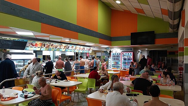 Zdá se, že v určitých intervalech se ne nepodstatná část návštěvnictva přesouvá právě do restaurace, takže v bazénech aspoň chvílemi zase tak přelidněno nebývá.