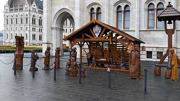 Předvánoční doba pronikla i před parlament. Betlém v lehce podživotní velikosti je přímého náporu turistů ušetřen, neboť stojí v nepřístupné zóně. Zábrany jsou možná na pohled symbolické, ale celé náměstí je plné strážců pořádku, kteří vám nedovolí vystoupit ani na obrubník od trávníku.