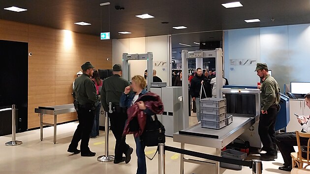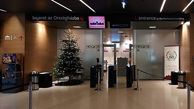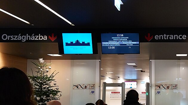 Za vstupem je bezpečnostní rám, přece jen vstupujete do budovy, v níž sídlí jedna ze složek státní moci. Do košíku vložíte svoje osobní věci, ty následně projedou rentgenem, a můžete jít dál.