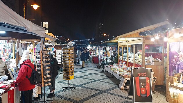 I tady probíhají vánoční trhy, a i když na nepoměrně menší ploše, nezdají se být o moc chudší než v centru Budapešti.