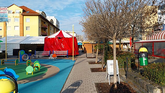 Zbývá ještě ujet poslední kousek HÉVem. Při téhle variantě cestování musím opravdu oproti taxíku počítat s hodinou navíc. Ale na adventní tržnici kousek od hotelu jsem po čtvrt na osm, pořád ještě ve slušnou dobu. Trochu mě překvapí, že téměř všechny stánky už jsou zavřené.