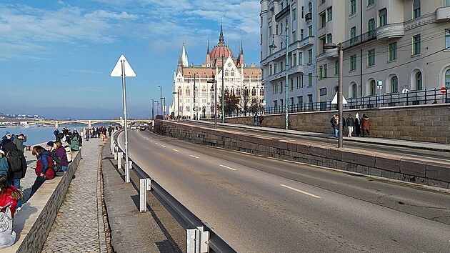 Z tramvaje vystupuji na Kossuthově náměstí. Obejdu zpátky ten oblouk, jímž se tramvaj vyhýbá budově parlamentu a vrátím se ještě o kus zpět podél Dunaje. To místo je v podstatě nepřehlédnutelné – ať už sem míříte v kteroukoliv denní dobu, vždy tu najdete hlouček lidí, který vás neomylně navede.