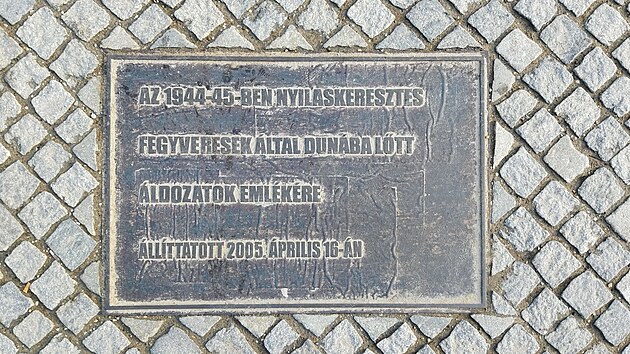 Byť z nich Židé tvořili asi čtvrtinu, je památník, odhalený 16. dubna 2005, chápán též jako připomínka maďarského holocaustu, jemuž padlo za oběť celkem asi 560.000 lidí. Důvod vzniku sousoší, sestávajícího ze šedesáti párů bot, vysvětlují tři pamětní desky vsazené do dlažby.