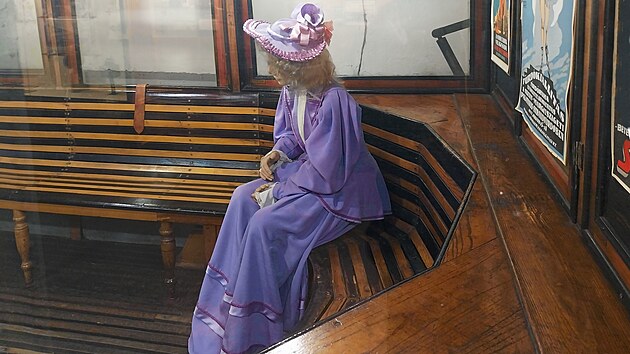 Odpovídajícím způsobem byl zrekonstruován i vnitřek vozu, poskytující cestujícím pohodlí a eleganci v té míře, jíž byla doba konce 19. století schopna. Své by o tom mohla vyprávět i dáma cestující sama, možná právě proto trochu smutná, přesto působící živějším dojmem než strnulý průvodčí u vchodu, jemuž navíc chybí pravá ruka (a teď se docela bavím představou, kolik čtenářů se teď vrátilo o tři fotky zpět, aby si ověřili, že tomu tak opravdu je).