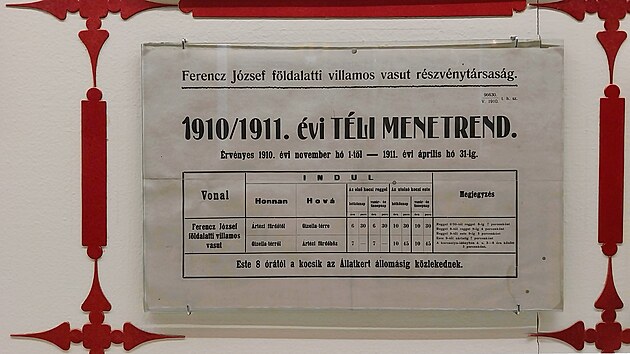 Tuto část expozice doplňují předměty listinné či papírové. Nádherně zachovaný je zimní jízdní řád platný od listopadu 1910 do dubna 1911. Metro tehdy jezdilo v pracovní dny i o víkendech od půl sedmé ráno do jedenácti večer, ale po osmé hodině večerní končilo nikoliv ve stanici Artézi fürdő, jak se tehdy též říkalo Széchenyiho lázním, nýbrž ve stanici Állatkert (česky Zoologická zahrada), která už dnes neexistuje. Intervaly se během dne měnily od čtyř do sedmi minut, nejkratší byly odpoledne ve dnech veřejného bruslení, kdy metro jezdilo každé tři minuty.