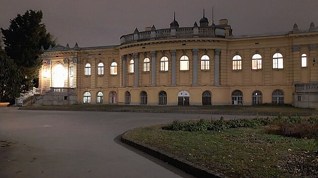 Za soumraku si sice dojdu pro fotku osvětlených lázní, ale venkovní bazén už mě nezláká. Krátkodobá předpověď počasí totiž vyšla, ochladilo se velmi citelně.