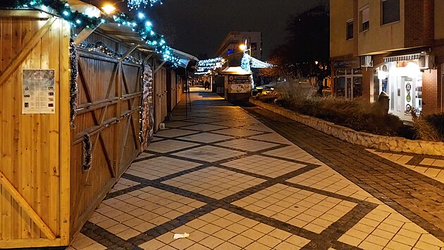 Za řekněme polojasna, které panuje, vypadají ty adventní stánky skoro nepatřičně. Všechny jsou zatím zavřené, proplétat se tedy netřeba, stačí prostě projít.