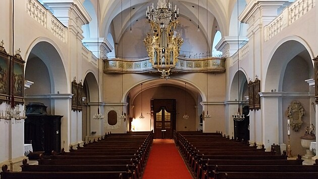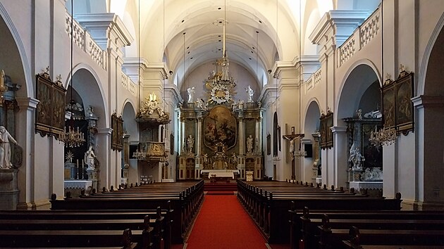 Je otevřeno, což mě po pravdě trochu překvapí, ale tím líp. Zatímco fasády kostela po úpravách z 19. století získaly klasicistní rysy, uvnitř je to čisté baroko. Zařízení interiéru je o něco málo mladší než samotná budova: oltář i s obrazem věnoval kostelu v roce 1704 radní Johann Jakob Stumpf, jenž byl mimoto osobním lékařem císaře Leopolda I.