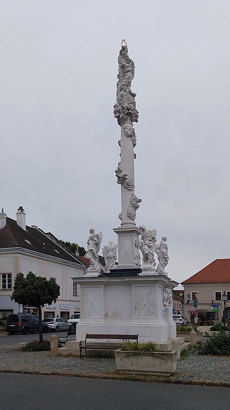 ... na jižním konci náměstí je pak Mariin sloup (německy Mariensäule) coby poděkování Panně Marii za ochranu před morovou ranou.