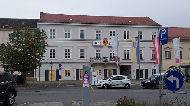 Ta předpověď vyšla jen zkraje. Poměrně teplo je pořád, ale bez deště dlouho nevydržíme. Všechno podstatné je naštěstí blízko centra. Zámek Prugg byl původně opevněným hradem, od roku 1560 je v majetku rodu Harrachů. Právě ti provedli zásadní přestavbu, po níž se z hradu stalo rodové sídlo. Tím je dodnes, a tak není veřejnosti přístupný. Navíc tu zrovna probíhá nějaká rekonstrukce, takže se nedá jít ani do parku, který naopak obvykle přístupný je.