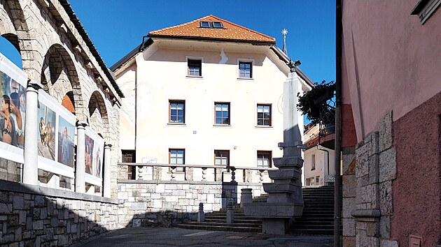 Tím pádem to kolečko kolem kostela dokončím. Jsem znovu na náměstí, hledané středisko sídlí v přízemí Kraňského domu (slovinsky Kranjska hiša), prakticky na úrovni kašny. Původně měšťanský dům, jakých jsou na náměstí celé řady, je starý čtyři stovky let, možná více. Do podoby blízké dnešní byl přestavěn v 19. století. Turistické centrum v domě sídlí od roku 2007, kdy byla dokončena jeho rekonstrukce.