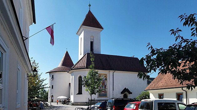 Zdejší Kostel sv. Šebestiána, Fabiána a Rocha na Pungartu (slovinsky Cerkev sv. Boštjana, sv. Fabijana in sv. Roka na Pungartu) je stavbou sice nápadnou, ale nějaký šikovný pohled na ni hledám docela dlouho. Střídavě mi v něm brání slunce, okolní domy a stromy. Jednolodní gotický kostel byl dokončen v roce 1478, zasvěcen je trojici světců, kteří jsou považováni za ochránce proti moru. A Pungart je místní název, vzniklý zkomolením německého slova Baumgarten. Odkazuje tedy na fakt, že na tomto místě kdysi bývaly městské sady.