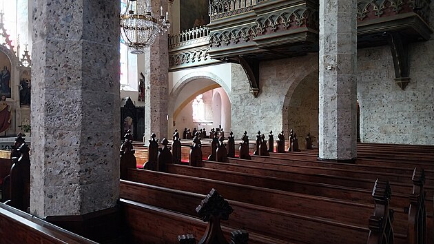 Existuje jakýsi písemný záznam, že hlavní loď byla dokončena roku 1413. Už v polovině 15. století však byl interiér zásadně přestavěn. Právě tehdy jej rozdělily sloupy na výsledné tři lodě.