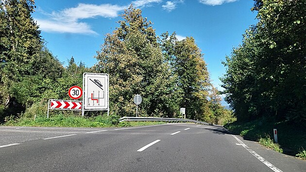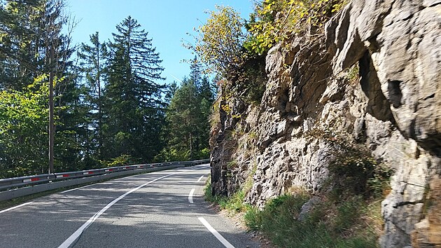 Nenechte se zmýlit pohledem na mapu. Pravda, zatáček je tady velmi málo. Silnice prudce padá dolů, její sklon je místy až osmnáctiprocentní. Dlouhé strmé úseky jsou pravým testem nervů i brzd, přičemž důrazně doporučuji testovat především tu motorovou.