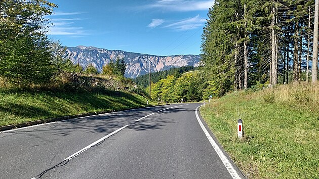 Několik ne moc prudkých zatáček vede celkem nenápadným stoupáním,...
