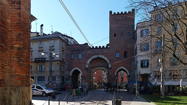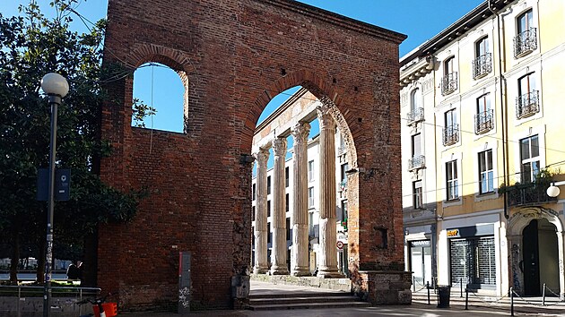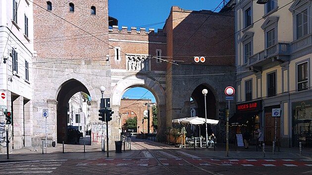 Tramvajová trať, která vede kolem římského sloupoví, krátce předtím prochází Ticinskou bránou (italsky Porta Ticinese, někdy pro odlišení od novější jmenovkyně Porta Ticinese Medievale, tedy „středověká“) z počátku 12. století. Jde o vzácně zachovanou část středověkého opevnění Milána, jejíž název samozřejmě odkazuje na poměrně blízký švýcarský kanton Ticino.