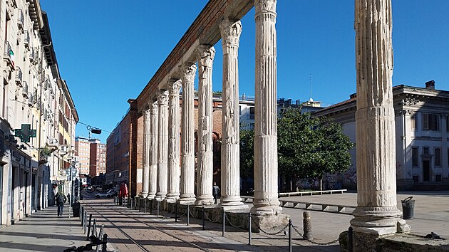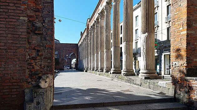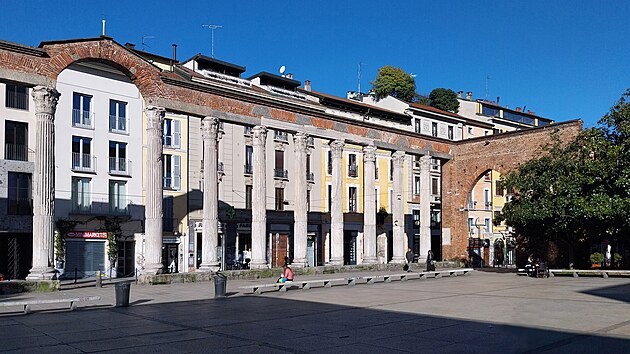Každopádně dnes sloupy ohraničují prostranství, na jehož druhé straně stojí Bazilika sv. Vavřince (italsky Basilica di San Lorenzo Maggiore). Náměstí vzniklo v polovině 30. let 20. století, a skoro se nechce uvěřit, že tenhle malý prostor byl vyplněn řadou nízkých domků. Jejich zbourání bylo výsledkem nových milánských urbanistických plánů, poplatných tehdejší době.