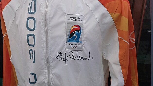 Je tu podepsaná bunda Stefanie Belmondo, v níž zapálila oheň zimní olympiády konané v roce 2006 v Turíně. Této cti se jí dostalo coby držitelce deseti olympijských medailí z běhu na lyžích, z toho dvou zlatých.