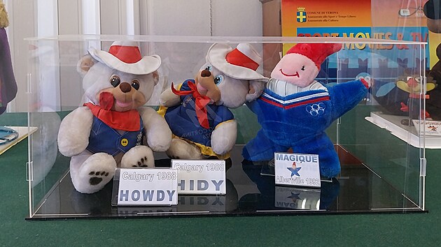... nebo dvojice medvídků Hidy a Howdy z následujících her v Calgary. Ta svůj průhledný box sdílí se svým nástupcem z Albertville 1992, jenž nesl jméno Magique. Ty plastové boxy jsou trochu problém: světlo se od nich různě odráží, a tak udělat pořádnou fotku je skoro nemožné.