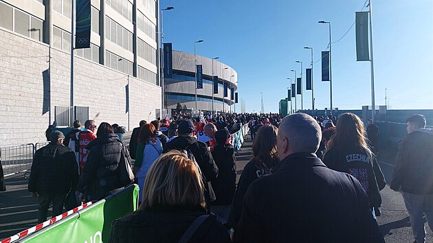 K aréně se dostáváme ve čtvrt na čtyři, dost dlouho před zápasem české reprezentace s Dánskem.