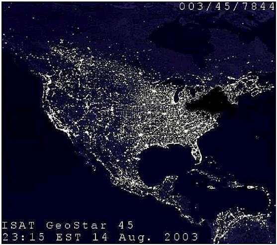 Psal, že ještě větší výpadek proudu byl v Americe 14.8.2003. Postihl cca 50 milionů lidí – na fotografii z družice vypadá jako obrovský záliv, kdyby nebyl „ve vodě“ New York a další velká města.
