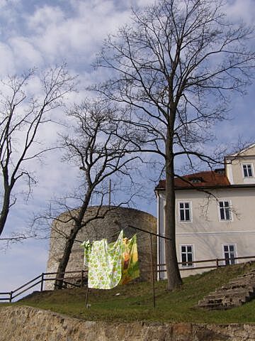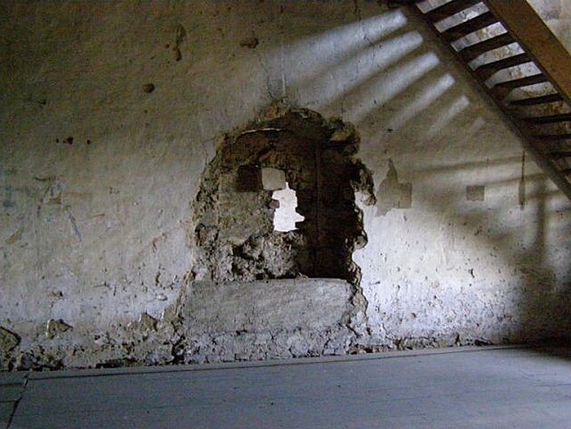 | Hrad se ve své původní podobě zůstal také kvůli tomu, že z něj panstvo udělalo po dostavbě nového paláce sýpku, takže byl užitečný. A užitečnost je vlastnost, kvůli které mnoho věcí zůstane zachováno... Měl bytelnou střechu, obilí provívalo a sypalo se od shora dolů otvory v podlaze ... |