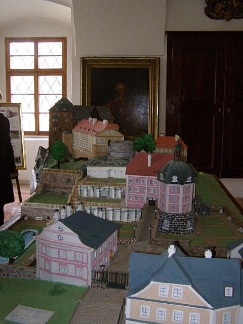 | Zámek si tentokkrát neprohlížíme. Známe expozici jako své boty, protože sem vodíme návštěvy a přátele zdáli, aby se pokochali relikviářem. Dnes vyrážíme na zapovězený hrad. V přízemí zámku si akorát prohlížíme nový model areálu, který vytvořili vězni z nedaleké věznice v Horním Slavkově. Správa zámku si spolupráci s věznicí pochvaluje. Dokonce se nabídli, že vyberou experta, který pomůže s otevřením starého nalezeného trezoru, od kterého se ztratily klíče... Není nad odborníky, i když zlatý věk kasařského řemesla je dávno pryč! | |