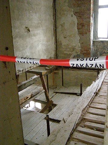 | Opouštíme hrad a vydáváme se do Pluhovského paláce. Není radno opouštět vytýčenou trasu, jinak se můžeme i bez výtahu ocitnout o dvě patra níž. | |