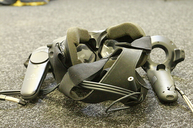“Starý” headset HTC VIVE se stal prvním příspěvkem do sbírky. Helma je propojena svazkem kabelů k Link boxu, ten pak s PC spojuje jeden kabel hdmi a jeden USB. Helma má na sobě i kabel s konektorem pro připojení sluchátek, jež ale nebyly součástí balení. Člověk tedy může vzít jakákoli vlastní sluchátka a zapojit je sem, ale stejně tak je možné použít zvuk přímo z PC, ať už přes zesilovač nebo třeba jen konferenční reproduktor.