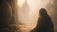 Marie osloví postavu, protože si myslí, že odnesl tělo Pána. Nedokáže racionálně uvažovat. Ale Bůh je s námi a my jej nevidíme. Vzpomněl jsem si na jeden příběh, kdy se po smrti dostane člověk do nebe. Ježíš jej vyzve, aby s ním prošel jeho život. Procházejí s ním tedy jednotlivé scény ze života. On vidí, jak jsou dvoje stopy v písku – jak jej Ježíš provází. Najednou, v určité životní situaci vidí ten dotyčný jenom jedny stopy. A začne Ježíši vyčítat: „To bylo tenkrát, když jsem byl nemocný, kdy mne opustila rodina. Já Tě volal, ale vidím, že jsem byl sám.“ Ježíš se usmál a řekl: „Ale bratře ,Ty jsi nebyl sám.“ – „Ale vidím jenom jedny stopy? Kde jsi byl Ty?“ – „Já Tě nesl na ramenou. Celou dobu jsem Ti byl nablízku.“ Ten dotyčný se pohyboval v temnotách. Přes slzy mu nebylo umožněno vidět, co se kolem děje. Ježíš byl u něj a on to neviděl, nechápal.