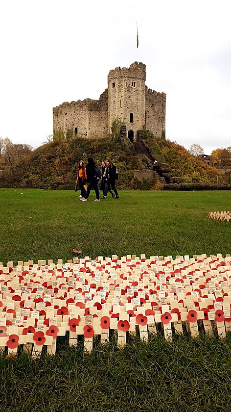 Nejslavnější je na Cardiffu ovšem hrad, který v jedenáctém století postavili na místě bývalého římského opevnění Normané. Kamenný dvacetihran s dvěma metry tlustými zdmi stojí na malém kopečku a jeho přilehlá věž se strmými točitými schody nabízí nádherné výhledy na město a okolí. Na hrad, velšsky zvaný Castell Caerdydd čili „cardiffský hrad“ jsme se hned došli podívat, i když jsem ani nedoufala, že se mi poštěstí dostat se dále než na nádvoří. Mé malé dítě totiž v poslední době neustále remcá nad tím, jak jsou hrady, zámky a muzea nudné; až jsme s Estherkou, která stejně jako já dovnitř chtěla, málem losovaly o to, kdo Petrušce tu radostnou novinu o návštěvě hradu sdělí. Peťka se však na nádvoří zcela nečekaně otázala, jestli jdeme koupit vstupenky, protože to tam vypadá zajímavě. Nevím přesně, co ji tam uchvátilo, jedná se v podstatě jen o velmi dobře zachovalou zříceninu, ale zato před ní stojí mohutný velšský červený drak. O přítomnosti vojenského muzea velšské kavalérie v podzemí jsem se ale pro jistotu už nezmínila, a takticky jsem pomlčela i o hradních tunelech, které za druhé světové války sloužily jako letecký kryt.