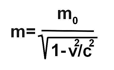 Čím vyšší je rychlost v, tím vyšší je hodnota zlomku v odmocnině. Čím vyšší hodnotu má tento zlomek (může se při hodně vysokých rychlostech blížit až k 1), tím menší číslo v odmocnině nacházíme. Menší číslo v odmocnině a tím i dolní části zlomku pak znamená vyšší hmotnost v levé části rovnice.